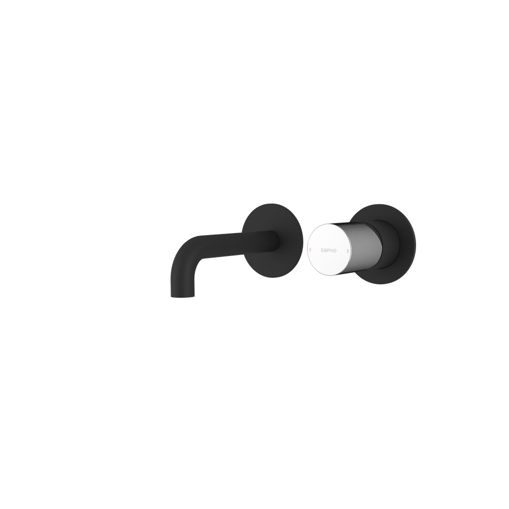 Sapho, ULTRATAP 2-prvková podomítková umyvadlová baterie, hubice 16cm, černá mat/chrom, UT118TBC