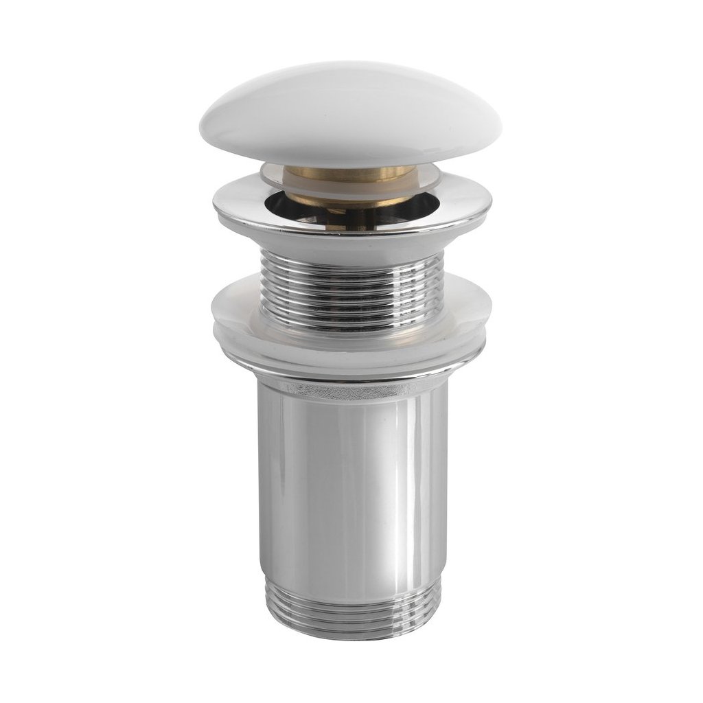 Sapho, Umyvadlová výpusť 5/4", click-clack, keramická zátka, tl.0-60mm, pro umyvadla bez přepadu, bílá, AR900
