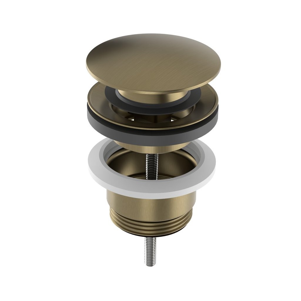 Sapho, Umyvadlová výpusť 5/4", click-clack, velká krytka, 10-65mm, zlato mat, CV1002G
