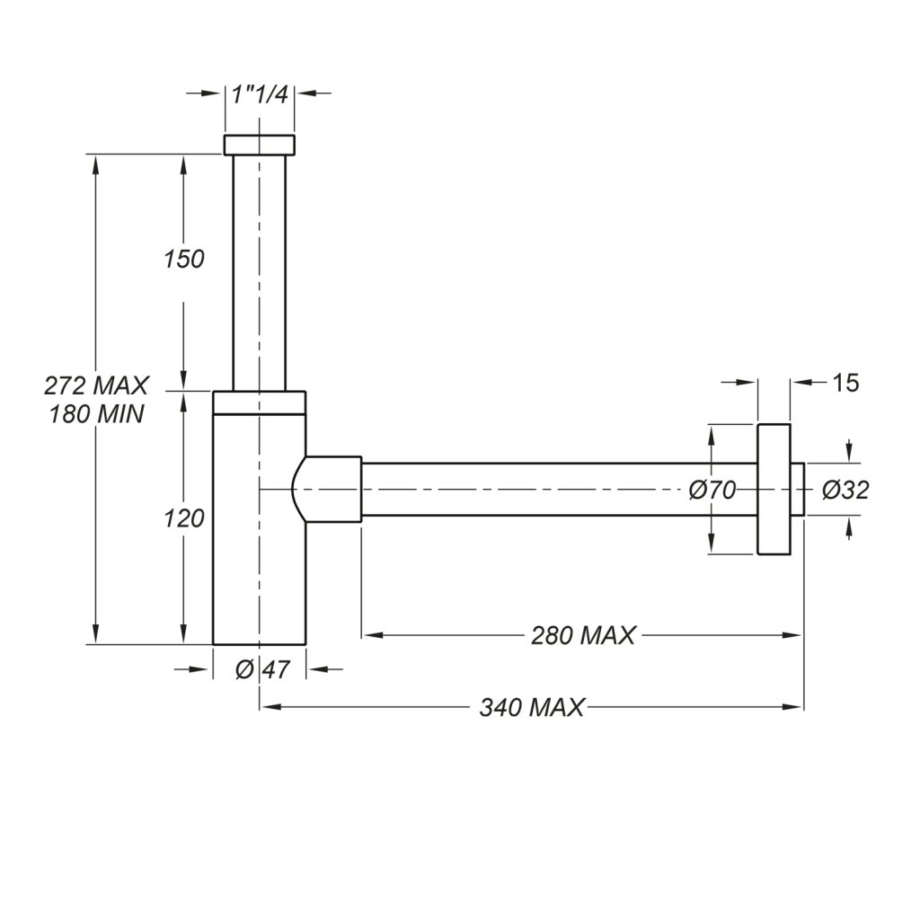 Sapho, Umyvadlový sifon 5/4", odpad 32mm, kulatý, zlato mat, SI519D