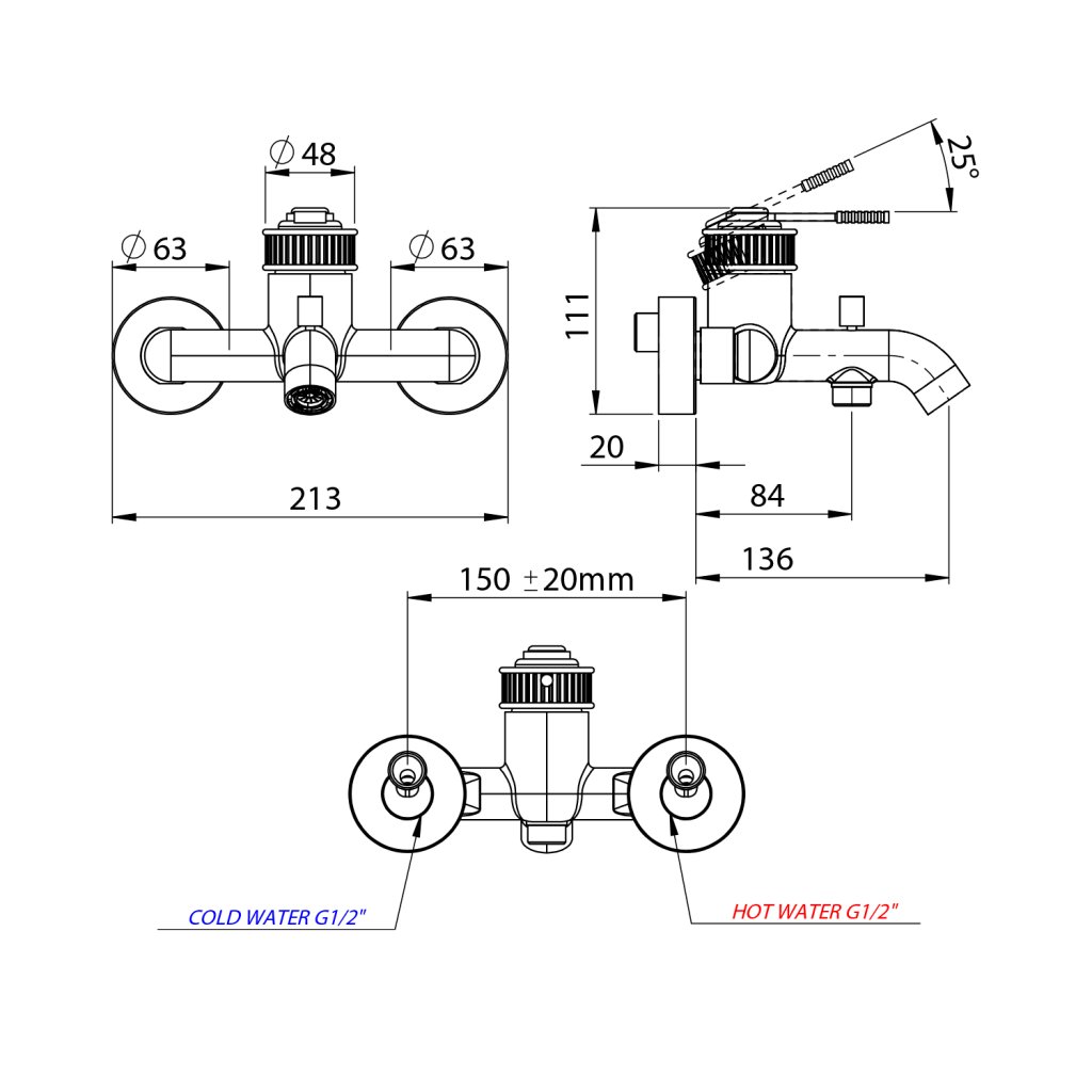 Sapho, VERSI nástěnná vanová baterie, černá matná, RV010/15