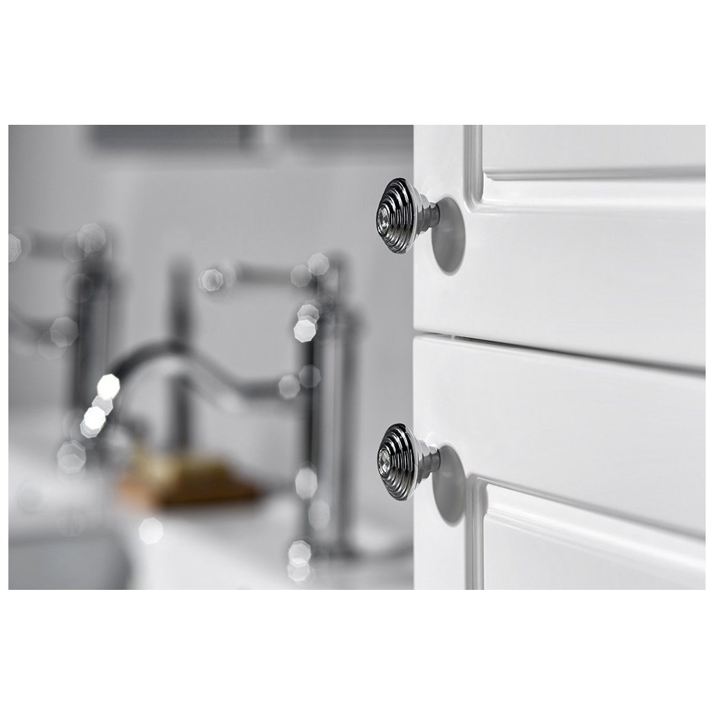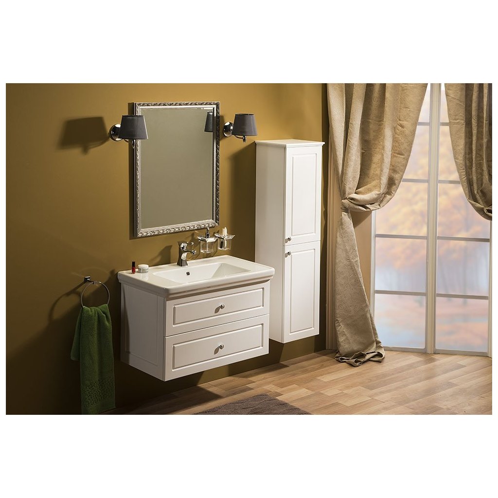 Skříňky VIOLETA ve vintage stylu s plastickým dekorem na zásuvkách i korpusu, doplněné úchytkou s krystalem SWAROVSKI, jsou vyráběny v bílém pololesklém provedení.