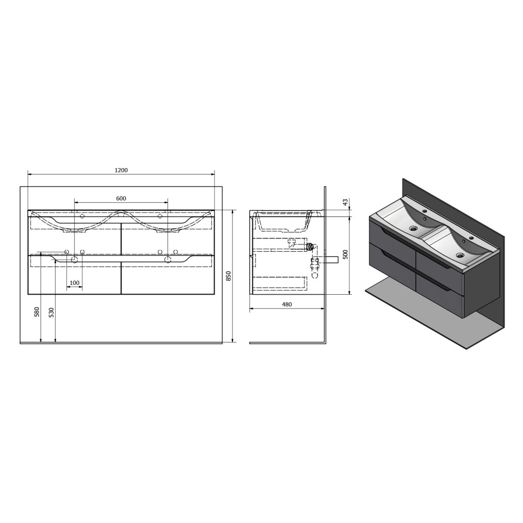 Sapho, WAVE dvouumyvadlová skříňka 119,7x50x47,8cm, bílá/dub collingwood, WA120-3019