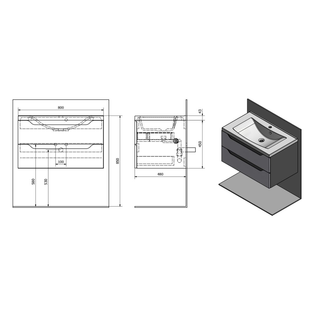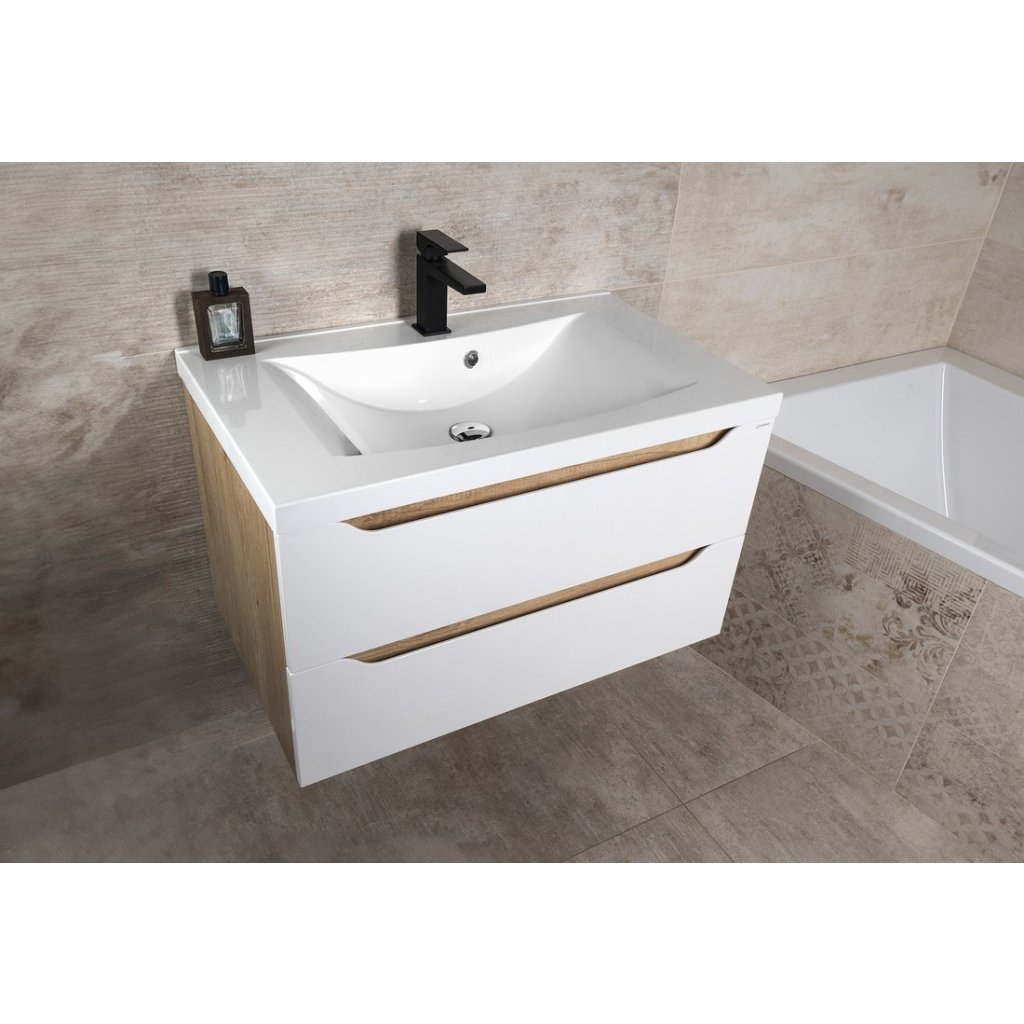 Sapho, WAVE umyvadlová skříňka 79,7x45x47,8cm, bílá/dub cuneo, WA080-3025