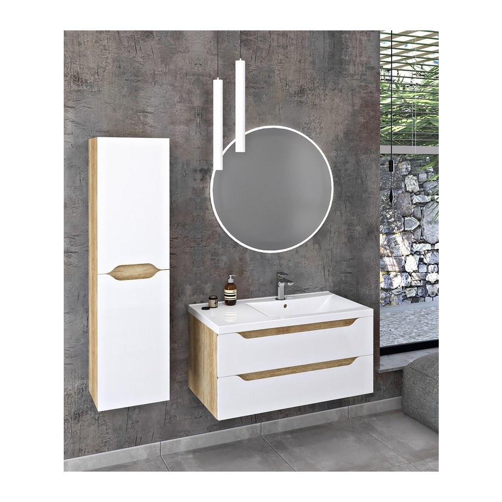 Sapho, WAVE umyvadlová skříňka 89,7x45x47,8cm, pravá, bílá/dub collingwood, WA093-3019