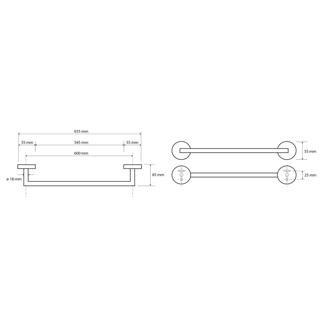 Sapho, X-ROUND BLACK držák ručníků 600x65mm, černá matná, XR404B