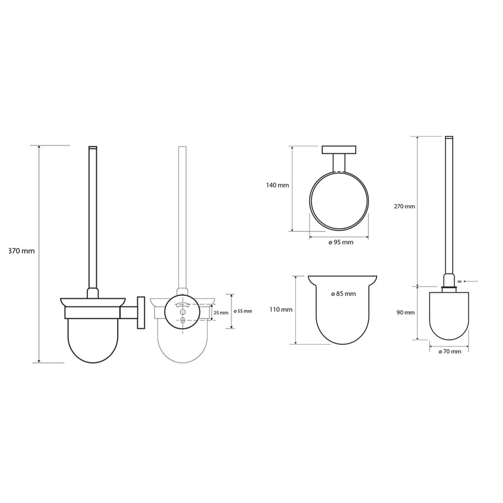 Sapho, X-ROUND BLACK WC kartáč nástěnný, miska mléčné sklo, černý, XR303B