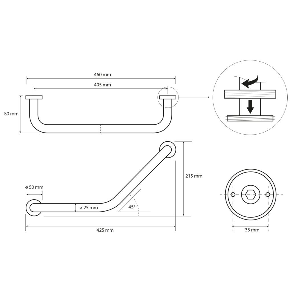 Sapho, X-ROUND E madlo lomené 400mm, chrom, XR502