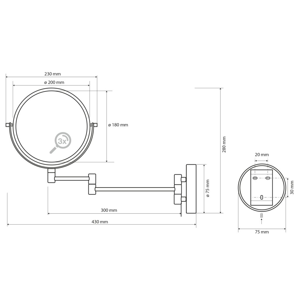 Sapho, X-ROUND závěsné kosmet. zrcátko, průměr 200mm, chrom, XR006