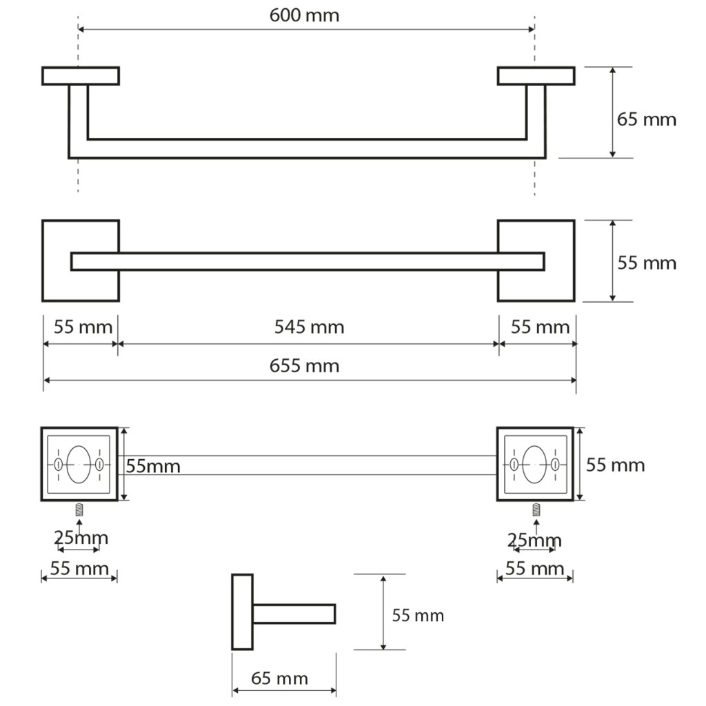 Sapho, X-SQUARE držák ručníků 650mm, chrom, XQ403