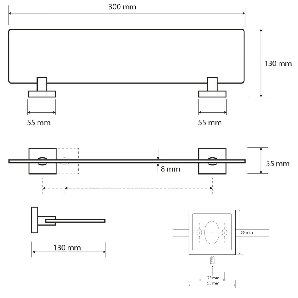Sapho, X-SQUARE polička skleněná 300x55x130mm, mléčné sklo, chrom, XQ602