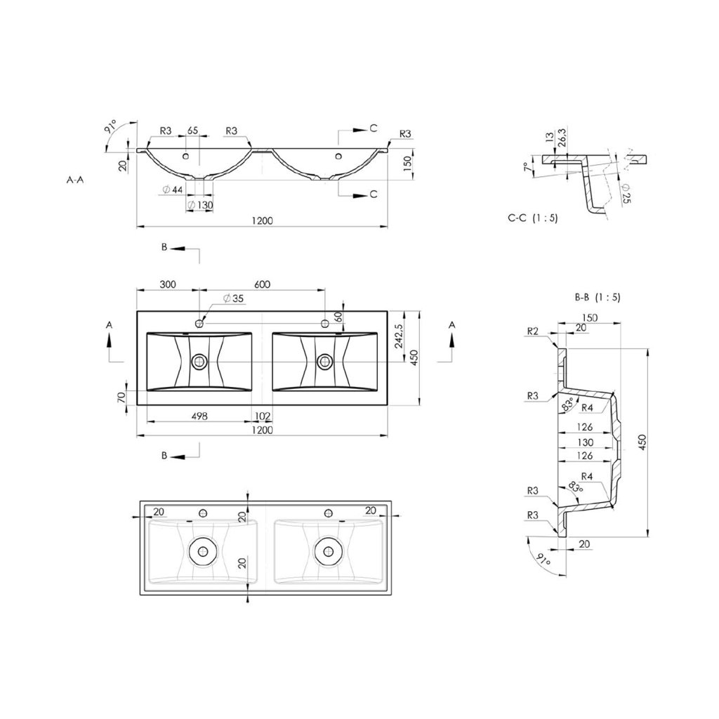 Sapho, YUKON dvojumyvadlo 120x45cm, litý mramor, bílá, YU120