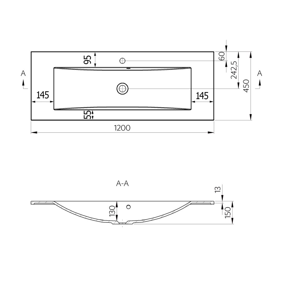 Sapho, YUKON umyvadlo 120x45cm, litý mramor, bílá, YU121