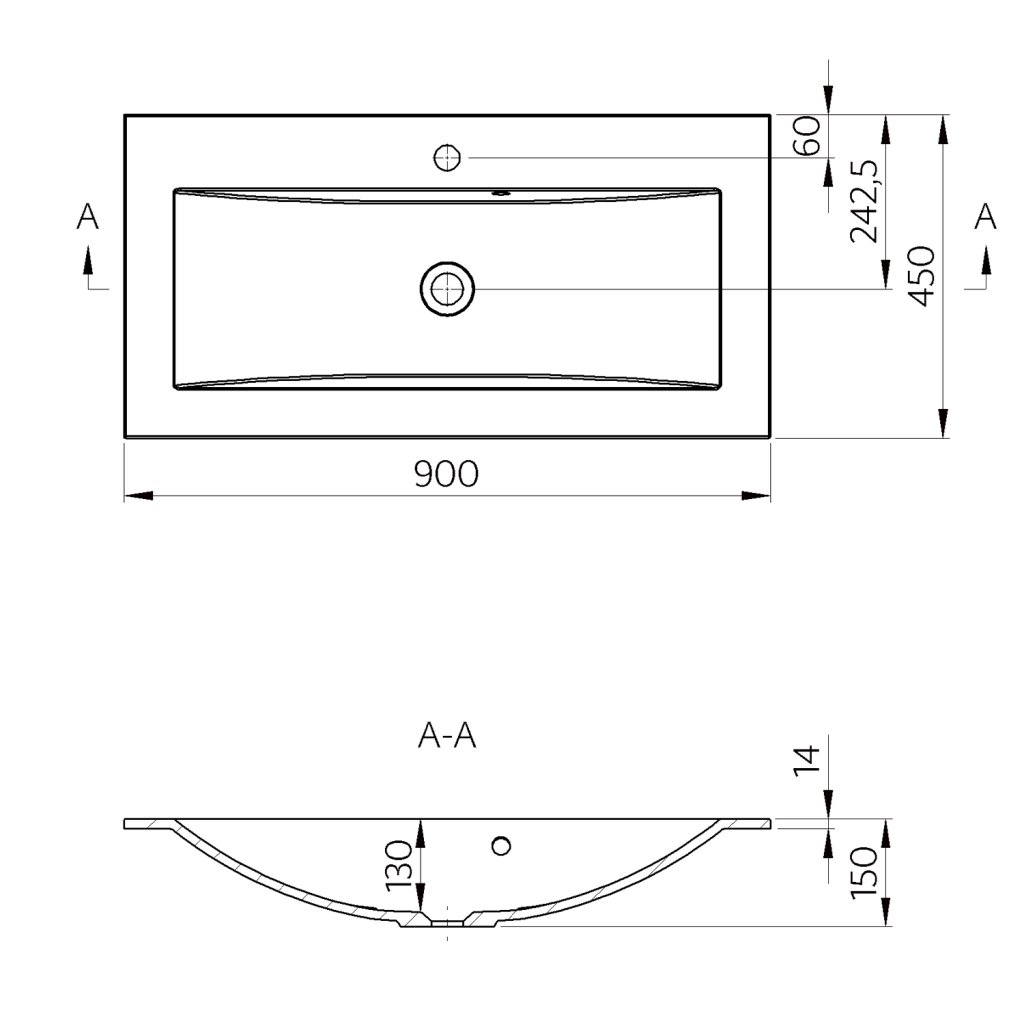 Sapho, YUKON umyvadlo 90x45cm, litý mramor, bílá, 55900