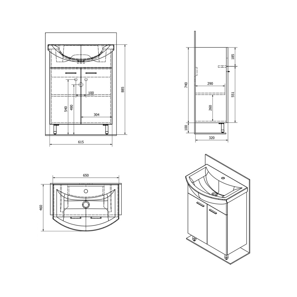 Sapho, ZOJA umyvadlová skříňka 61,5x74x32,5cm, dub platin, 2x dvířka, 51163