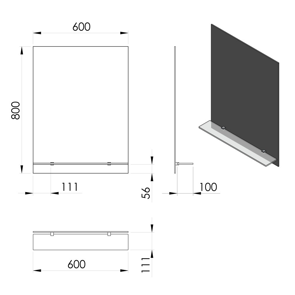 Sapho, Zrcadlo s policí 60x80cm, včetně závěsů