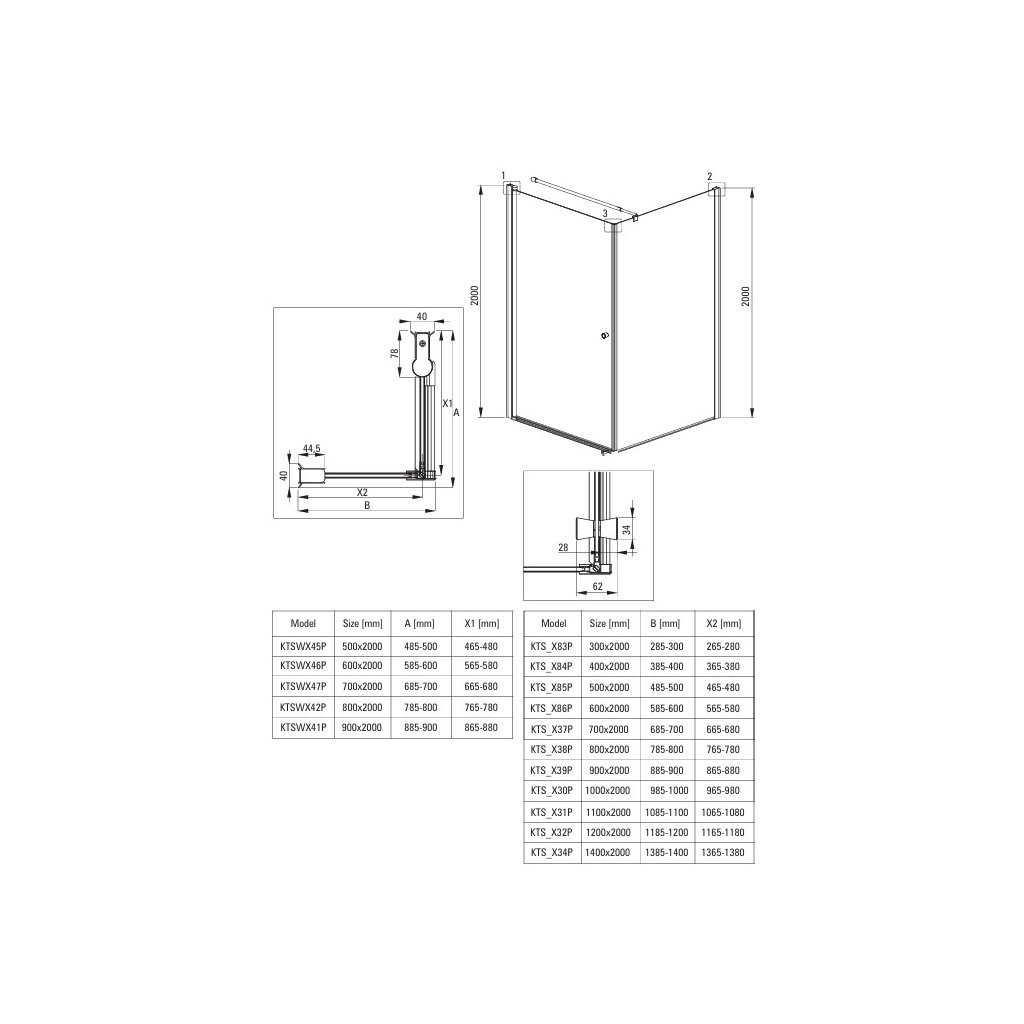 Shower doors, 50 cm - swing doors