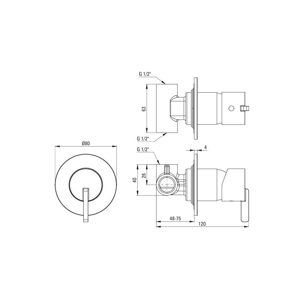 Shower mixer, concealed, without shower switch
