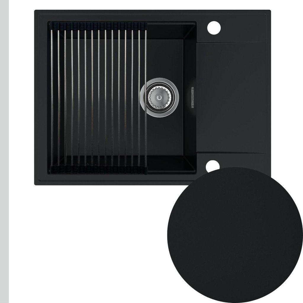 Sink Quality Sink55, kuchyňský granitový dřez 620x460x215 mm + chromový sifon, černá, SKQ-SINK.C.1KKO.X