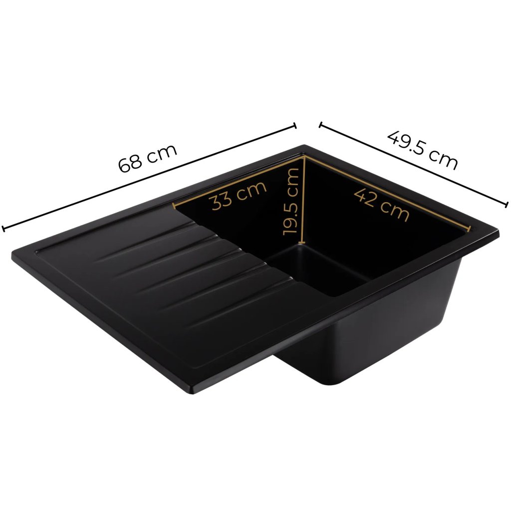 Sink Quality Titanite, kuchyňský granitový dřez 680x495x215 mm + zlatý sifon, černá, SKQ-TIT.C.1KKO.XG