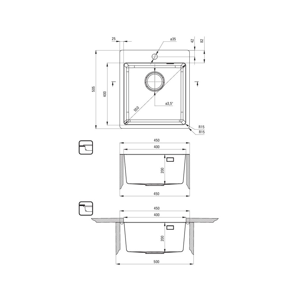 Hřeben vyrobený z oceli je resistant to až do 250 stupňů Celsius, teploměrné šokování a dopady na teplou šoku a vysoké teploty až do 250 stupňů Celsia a impact. Stainless steel použitý pro výrobu sinks tvořící 18% chrom, který odpovídá vysoké chemické strength a 10% nickel, který additionally elasticity. Suché a kombinované výsledky v pretty, aesthetic and constant color. Stainless steel je easy to clean, repels germs z povrchu. The antiseptic coating guarantees a vysoké úrovně hygieny a je to snadné.The sink is equipped with fittings with connection to the dishwasher