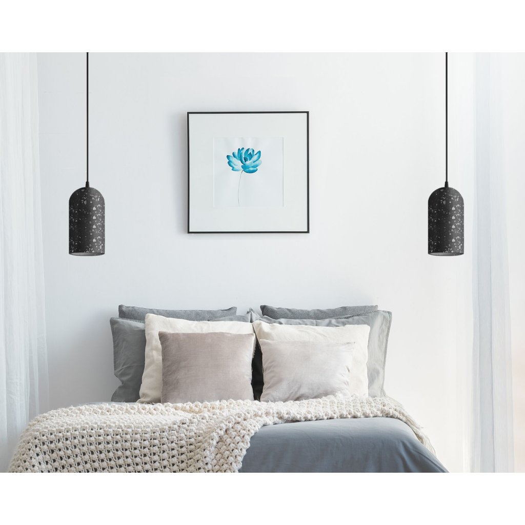 Malá stropní lampa je vyrobena z betonu.
