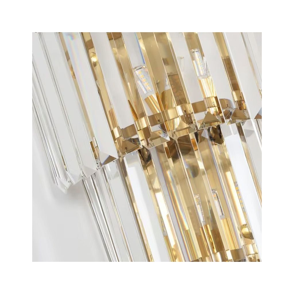 Křišťálová nástěnná lampa je dokonalou kombinací elegance a funkčnosti, která dodává interiéru luxusní nádech. Jeho konstrukce je vyrobena z odolného kovu se zlatým povrchem, který zaručuje odolnost a odolnost vůči poškození. Křišťálové prvky mu dodávají jedinečný charakter, odrážejí světlo a vytvářejí účinné osvětlení, které zdůrazňuje stylové aranžmá. Díky použití standardního závitu E14 je nástěnná lampa kompatibilní s mnoha typy žárovek, což vám umožňuje upravit barvu a intenzitu světla podle vašich představ. Univerzální design jej činí ideálním pro klasické i moderní interiéry. Bude ideální do obývacího pokoje, ložnice, chodby i do elegantních komerčních prostor, jako jsou restaurace nebo hotely.