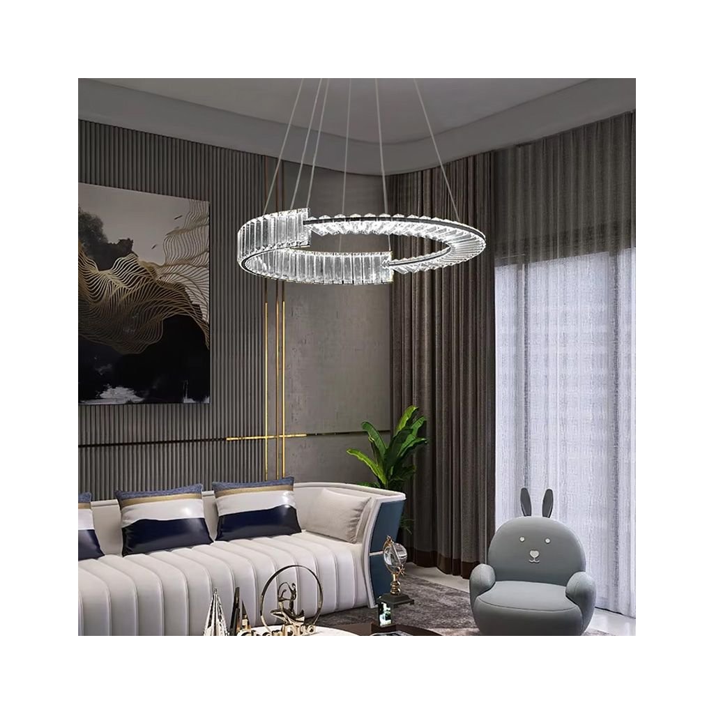 Chromová křišťálová závěsná lampa je kvintesencí elegance a sofistikovaného stylu. Jeho originální design prstenu přitahuje pozornost a přináší do interiéru nádech luxusu. Kombinace stříbrné kovové konstrukce a skleněných krystalů vytváří působivou kompozici, která krásně odráží světlo a dodává místnosti jedinečnou záři.