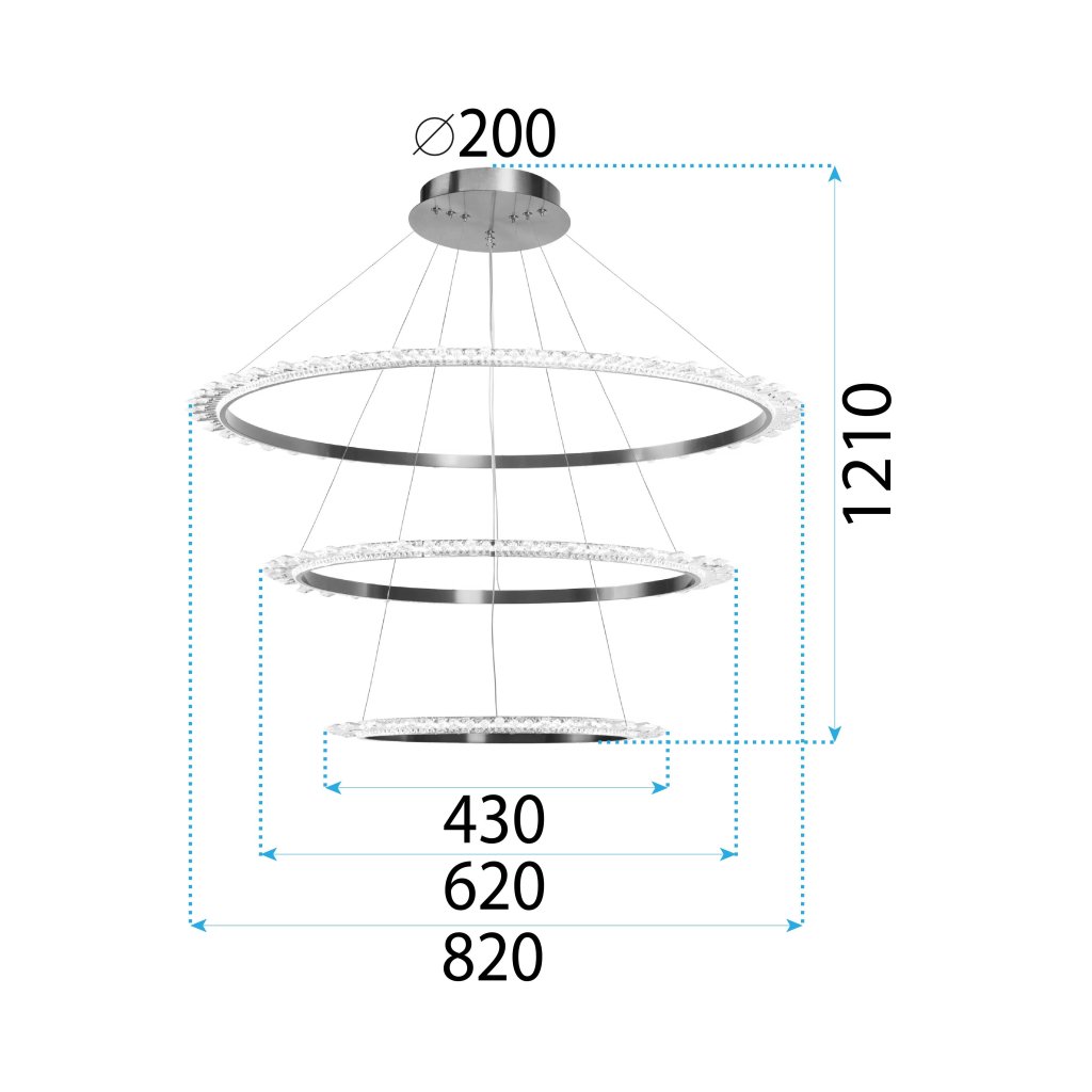 Křišťálová závěsná lampa se třemi zlatými kroužky je esencí luxusu a moderního designu. Jeho neobvyklý vzhled přitahuje pozornost, díky čemuž je hlavní ozdobou každého interiéru. Design lampy je založen na třech kovových obručích, kaskádovitých na jemných žilách, což jí dodává lehkost a eleganci. Obruče ve zlaté barvě jsou zdobeny krystaly, které vytváří jedinečný světelný efekt. LED pásky ukryté pod krystaly vyzařují krásné světlo, jehož výkon a barvu lze nastavit pomocí přiloženého dálkového ovladače. Tato lampa je ideální do obývacího pokoje, jídelny nebo elegantní kanceláře, zdůrazní prestiž a styl každé místnosti.