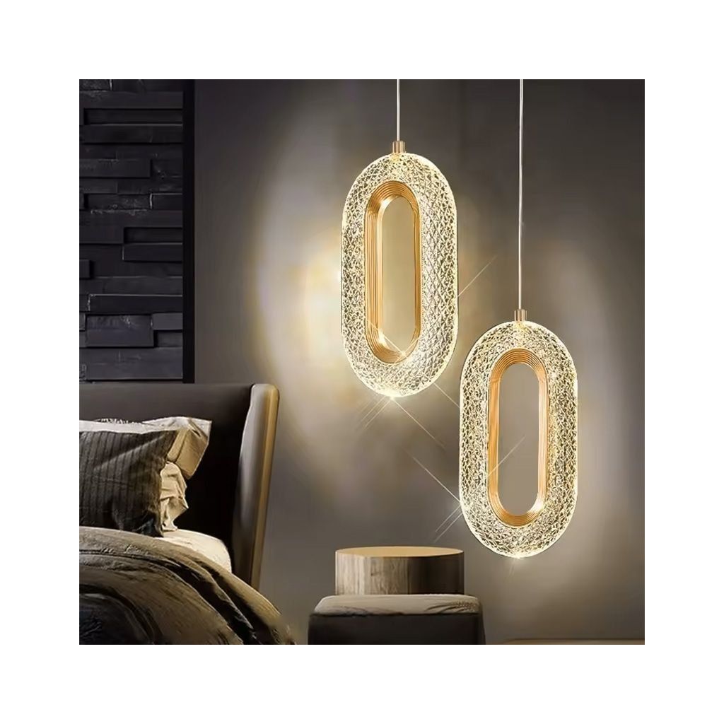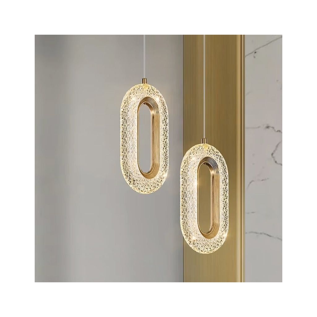 Elegantní závěsná LED svítidla se zlatou povrchovou úpravou a křišťálovým efektem jsou skvělou volbou pro ty, kteří hledají moderní osvětlení s nádechem luxusu. Designové oválné tělo s jemným žebrováním krásně rozptyluje světlo a vytváří jedinečnou atmosféru v každém interiéru.