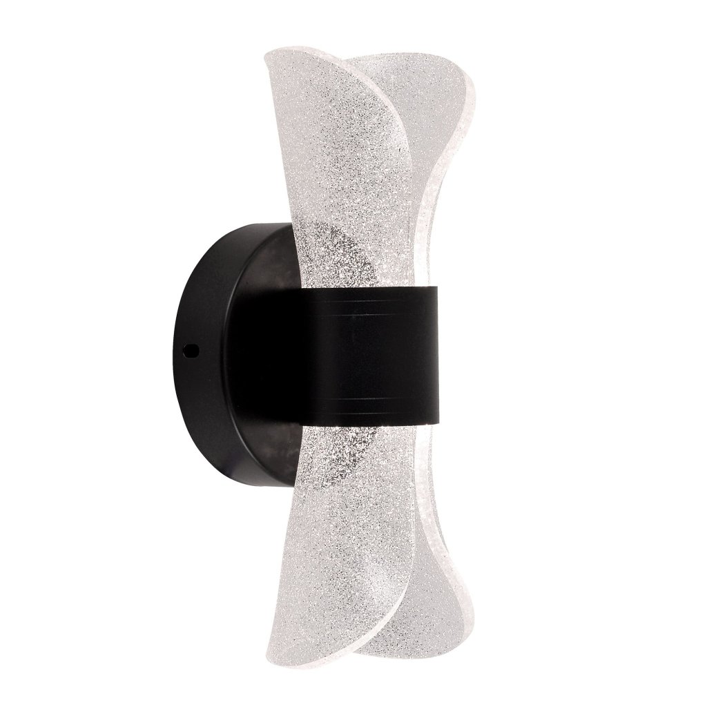 - LED nástěnné svítidlo s moderním a efektním tvarem je ideálním návrhem pro lidi, kteří oceňují dekorativní osvětlení a originální design. Svítilna se vyznačuje stínítkem ve tvaru vlny vyrobeným z průhledného plastu se strukturou drobných krystalů, které krásně rozptylují světlo. Černý montážní prvek dodává celku eleganci a kontrast a vytváří trendovou, geometrickou kompozici.