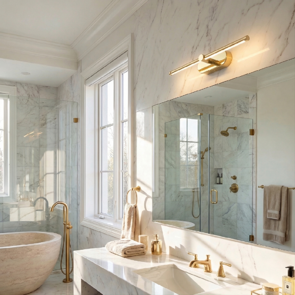 Tato kompaktnost otevírá instalační možnosti, kde delší modely nejsou vhodné – nad malé štítky zrcadel, vedle obrazů ve formátu A3 nebo menším, u nočního stolku nebo jako záměrný zlatý akcent v prostorách, kde každý centimetr stěny má hodnotu.