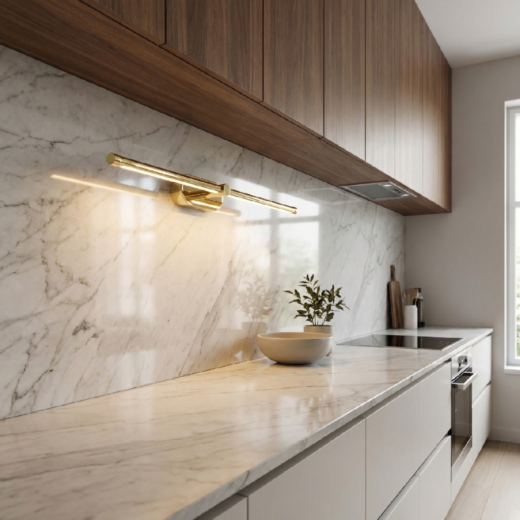 Ve zlaté lineární sérii s profilem 85 mm existuje pro délku 600 mm i matná verze – APP1893-1W Brush Gold (OSW-66048). Obě mají stejnou konstrukci, stejný profil a stejný mléčný difuzor, ale povrchová úprava zásadně mění jejich charakter. Lesklá zlatá (tahle lampa) je dynamičtější, teplejší a okázalejší – vhodná pro glamour, art-deco a bold luxury interiéry. Kartáčovaná zlatá matná je sofistikovanější a tlumenější - vhodná pro moderní luxury a skandinávský styl.