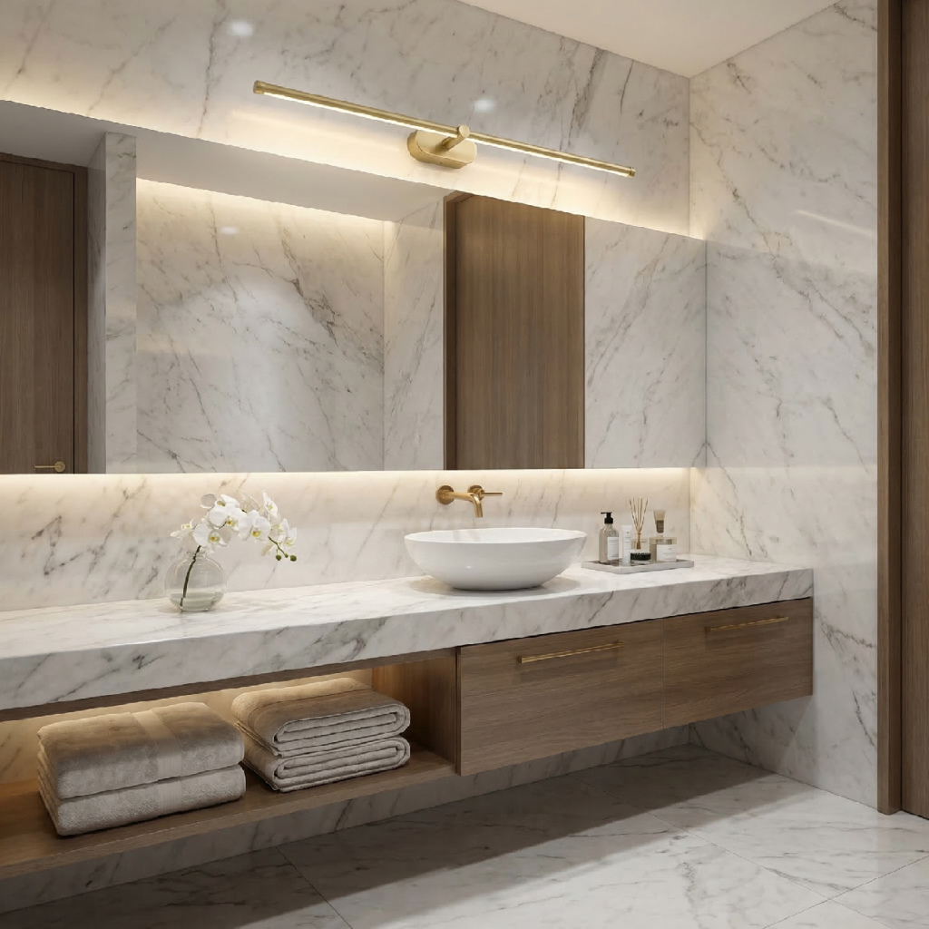 Příkon 13 W a světelný tok 501–1000 lm při délce 800 mm zaručují funkční akcentní osvětlení, nikoli primární zdroj světla pro celou místnost. Barevná teplota 4000 K (neutrální bílá) je optimální pro osvětlení zrcadla, obrazů i pracovních ploch.