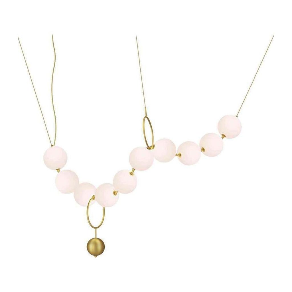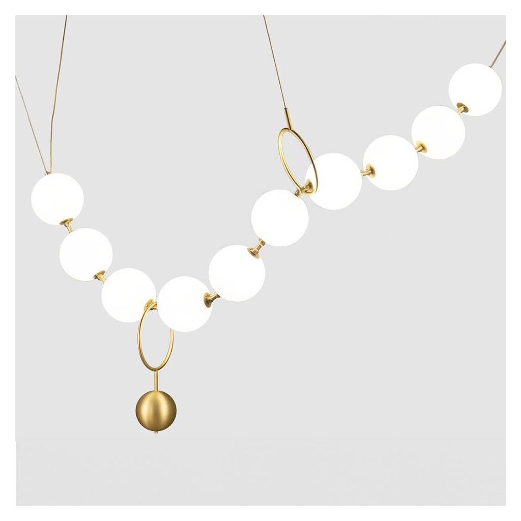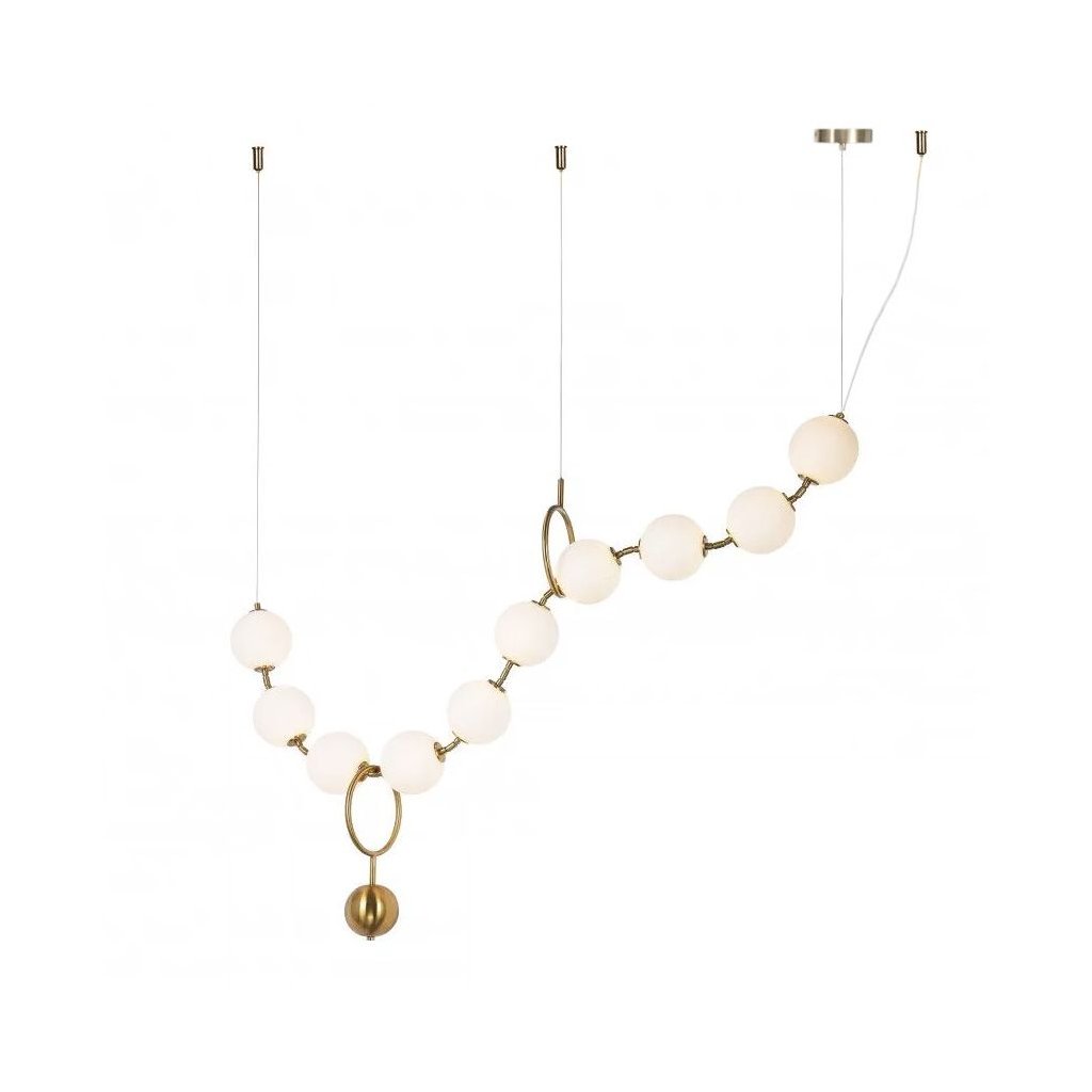 ✴️ Lampa má jedinečný, umělecký vzhled, který upoutá pozornost a dodá eleganci každé místnosti . Skládá se ze série sférických stínidel vyrobených z bílého matného skla, které vytvářejí působivou kompozici. Zlaté designové prvky dodávají luxusní nádech a dokonale ladí s bílými odstíny.