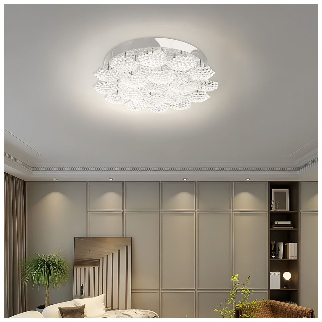 LED svítilna je nabídkou pro ty, kteří hledají elegantní a moderní stropní osvětlení , které má i dekorativní funkci. Použití mnoha průhledných prvků s křišťálovou strukturou způsobuje, že světlo se rozptyluje jedinečným způsobem, vytváří jemné odrazy a dodává interiéru lesk.