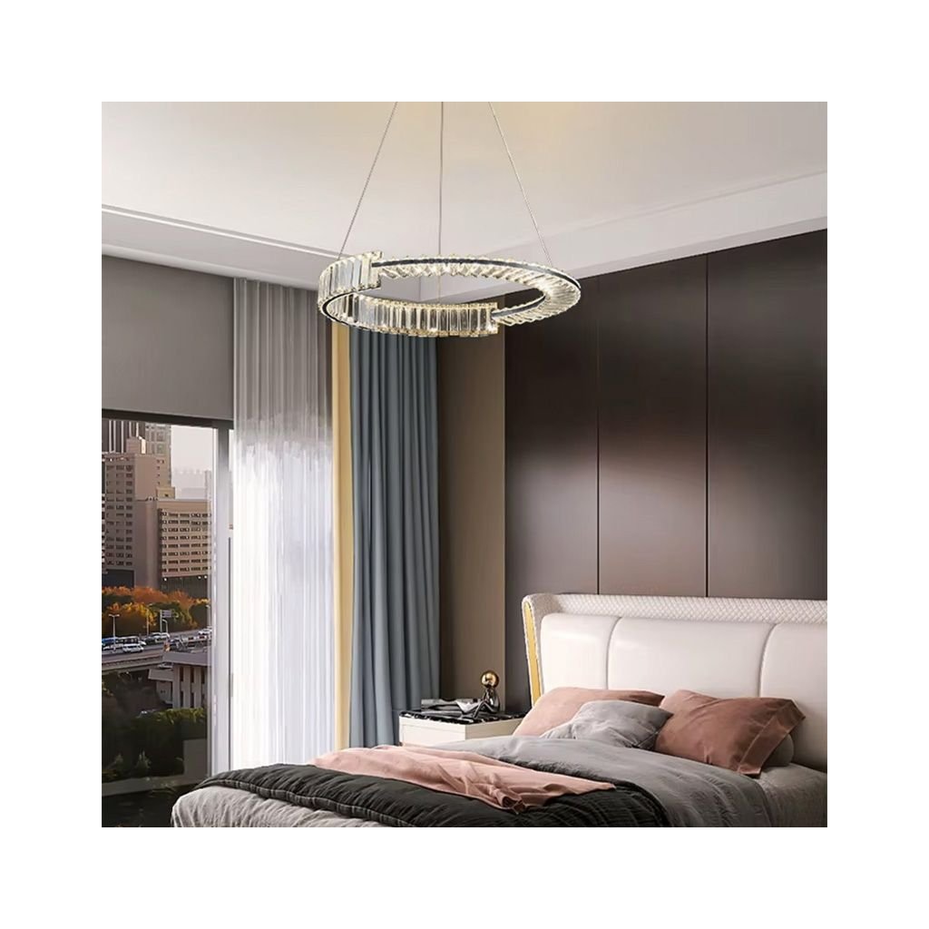 Závěsná LED lampa je jedinečnou kombinací moderní funkčnosti a nadčasové elegance, která do interiéru vnáší auru luxusu. Jeho designová forma, bohatá na křišťálové dekorace, upoutá pozornost, jemně rozptyluje světlo a dodává prostoru jedinečný charakter. Díky svému univerzálnímu stylu bude ideální pro moderní i klasická aranžmá, stane se ústředním bodem dekorace a zdůrazní jeho sofistikovanost.