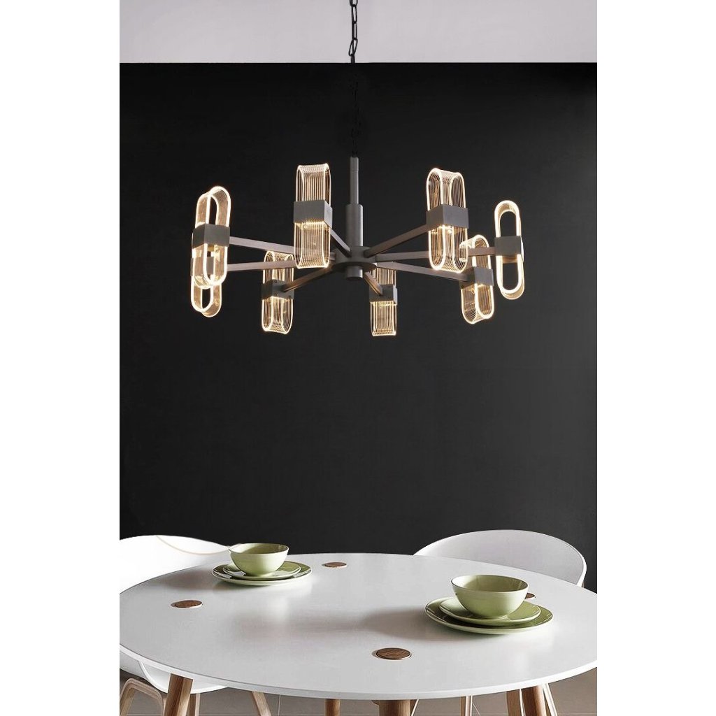 Lampa spolu s krytkou je vyrobena z kovu. Odstíny jsou vyrobeny z plastu. Díky použitým materiálům je lampa estetická a odolná a stínítka jsou vynikajícím lehkým transportérem, který navíc zachovává původní design. Lampa je zavěšena na krytku pomocí řetězu (v materiálovém krytu). Délka řetězu je 63 cm. Při montáži lampy lze řetěz přeskočit. Celková výška pak bude 27 cm. Jedinečný vzhled nevylučuje žádné uspořádání – jednoduchý styl umožňuje, aby se lampa vešla do jakéhokoli typu místnosti, kuchyně, obývacího pokoje a dětského pokoje. Lampa se prodává včetně dálkového ovladače, pomocí kterého můžeme ovládat její parametry.