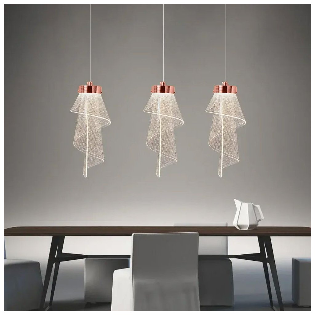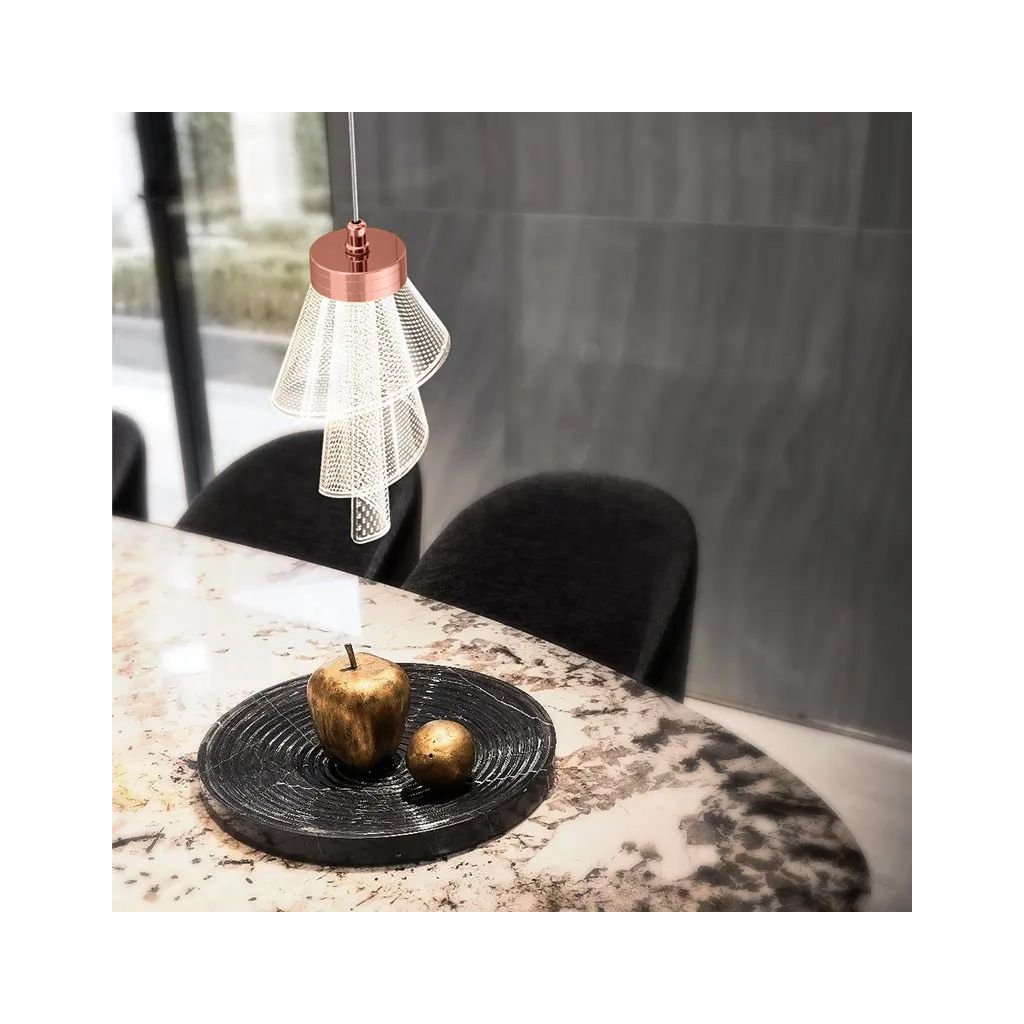 Povrchová úprava růžového zlata krásně ladí s módními styly interiéru – od půvabu, přes moderní až po ženskou klasiku. Tato lampa je skvělou volbou do obytných i komerčních prostor, jako je kosmetický salon, moderní hala nebo designová jídelna.