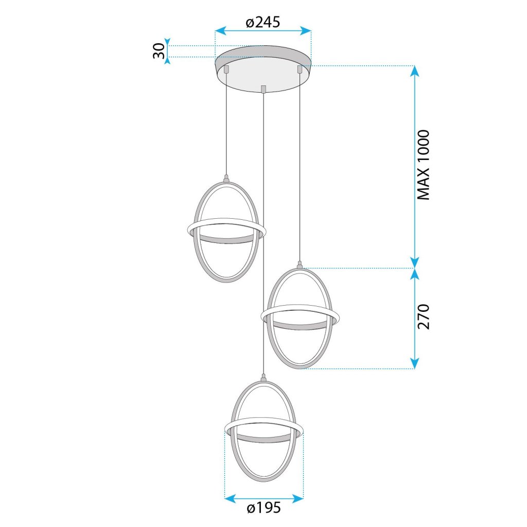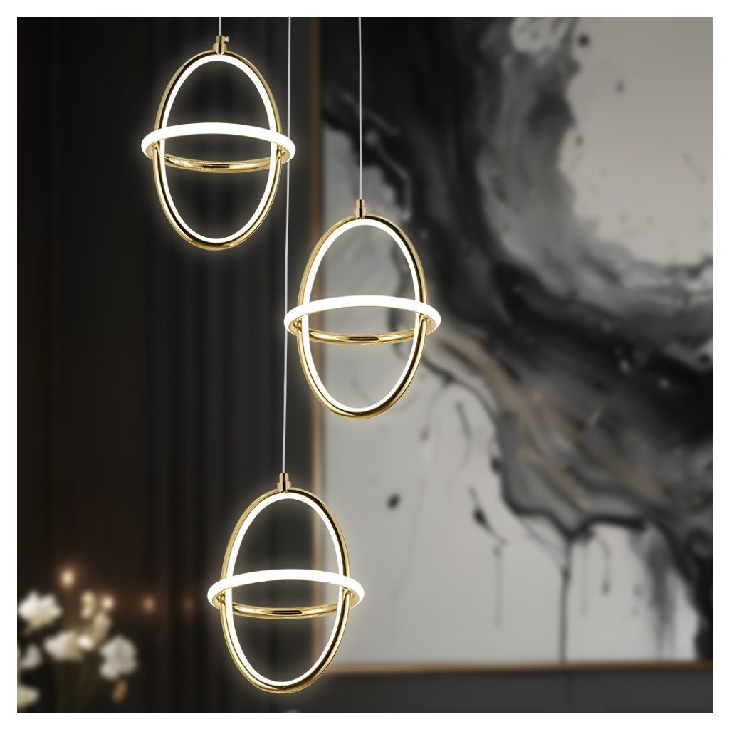 Toolight, LED závěsné svítidlo 3x 20x28cm, 60W, 4000K, 4200lm, G064-3CPR, zlatá lesklá, OSW-08696