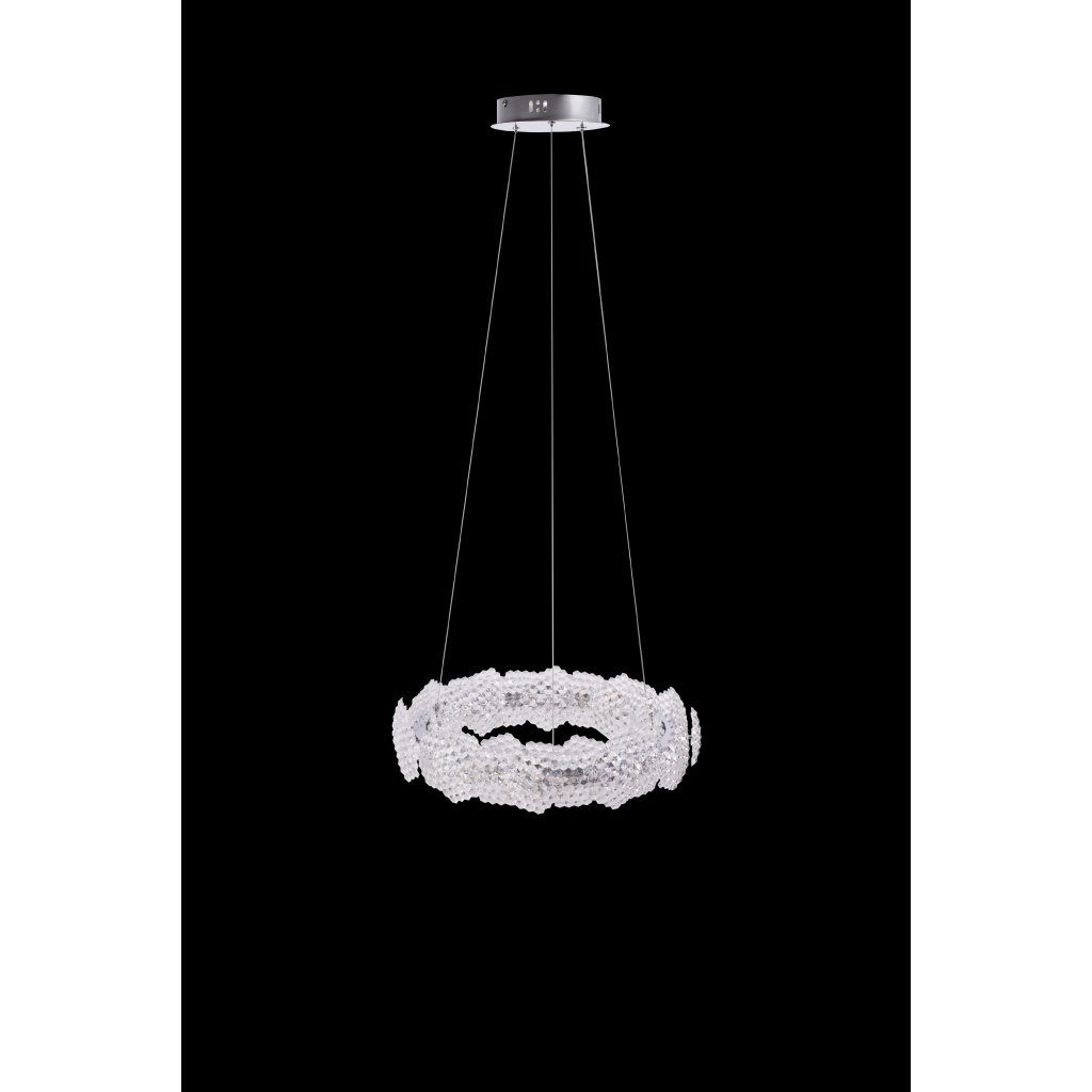 Tento působivý lustr Led je volbou pro ty, kdo hledají elegantní a moderní stropní osvětlení, které má zároveň dekorativní funkci. Použití mnoha průhledných prvků s krystalovou strukturou způsobuje, že světlo se rozptyluje jedinečným způsobem, vytváří jemné odlesky a dodává interiéru lesk. Zajímavý prstenec lampy a chromový lesklý povrch mu dodávají moderní a exkluzivní charakter. Integrované LED světelné zdroje zaručují nejen vynikající osvětlení místnosti, ale také energetickou účinnost a dlouhou životnost. Je ideální do obývacího pokoje, ložnice, haly nebo komerčních prostor.
