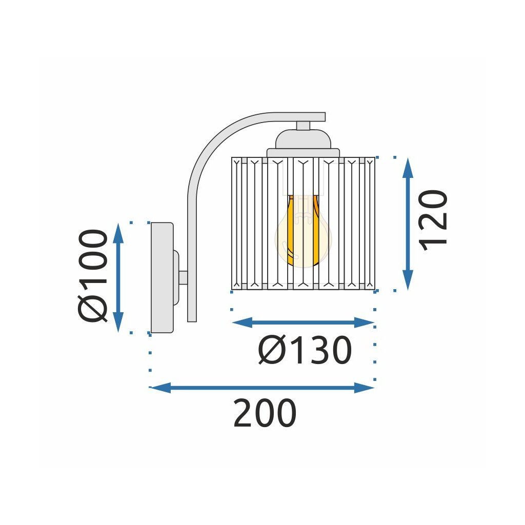 Lampa je vyrobena z křišťálového skla a kovu – spolu s mřížkou. Nástěnná lampa má závit E27, maximální výkon žárovky je 60W.
