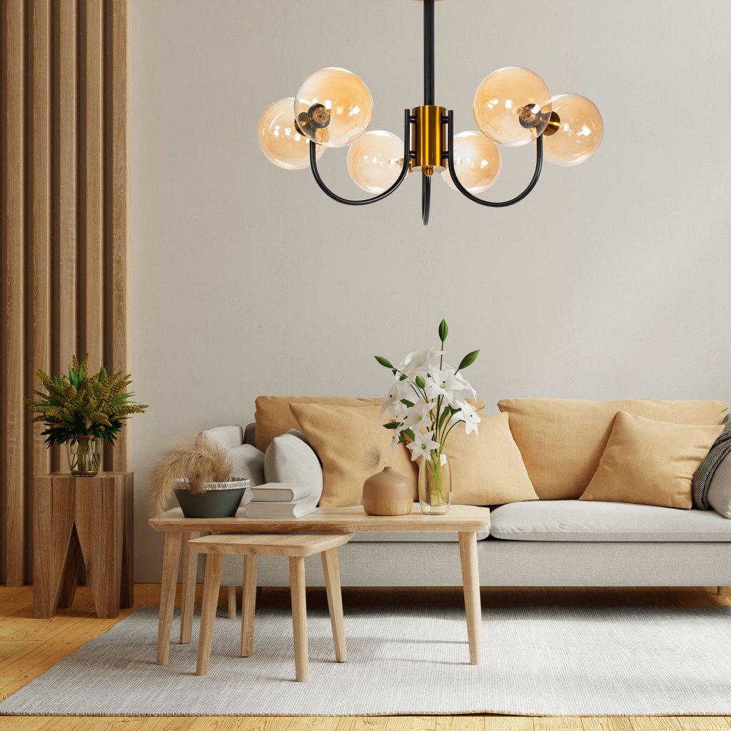 Toolight, skleněná závěsná stropní svítilna 6xG9 APP1120-6CP, zlatá-černá, OSW-40100