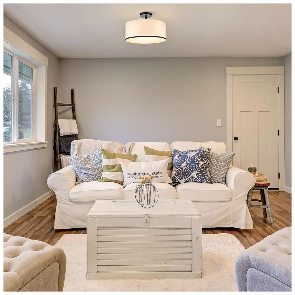 - Elegantní design – světlé stínítko s černým rámem se perfektně hodí k různým stylům interiéru.