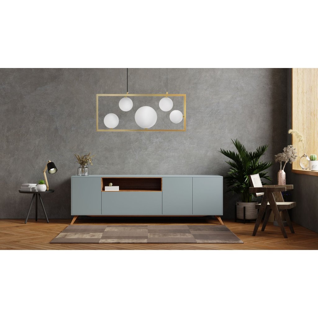 Stropní závěsná lampa vyrobená z kovu. Má 5 světelných bodů. Vysoce kvalitní materiály a přijatelná cena z něj činí vynikající volbu. Díky jednoduchému stylu bude perfektně fungovat v každé místnosti – kuchyni, obývacím pokoji, jídelně.