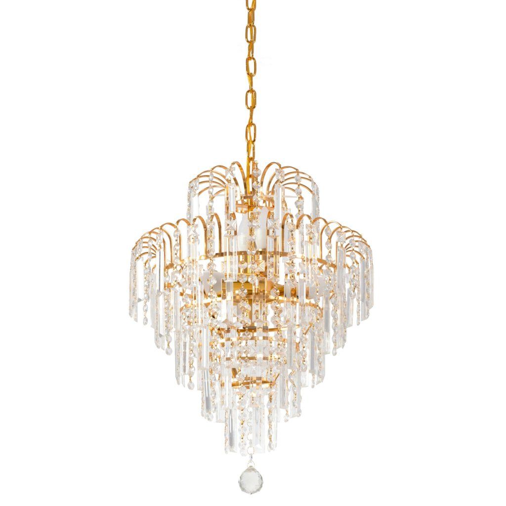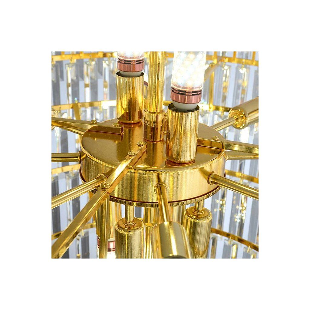 Fenomenální stropní svítidlo je jedinečnou nabídkou pro lidi, kteří oceňují luxusní design a nadčasovou eleganci. Bohatě zdobený, celý ve zlatém provedení s působivým kaskádovým uspořádáním křišťálových přívěsků, vytváří v interiéru atmosféru třídy, elegance a třpytu.