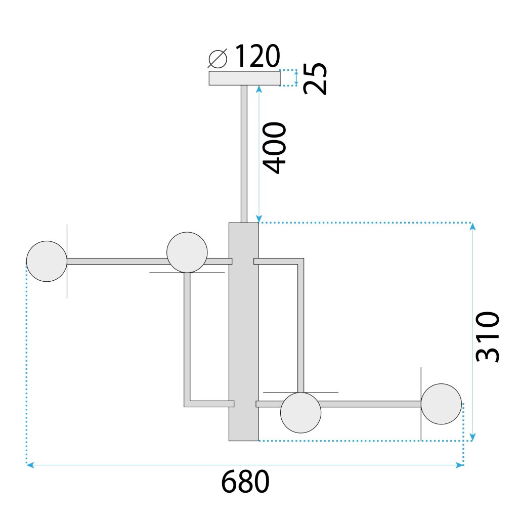 - 6 držáků žárovek G9, které vám umožňují přizpůsobit barvu a intenzitu světla potřebám uživatele.