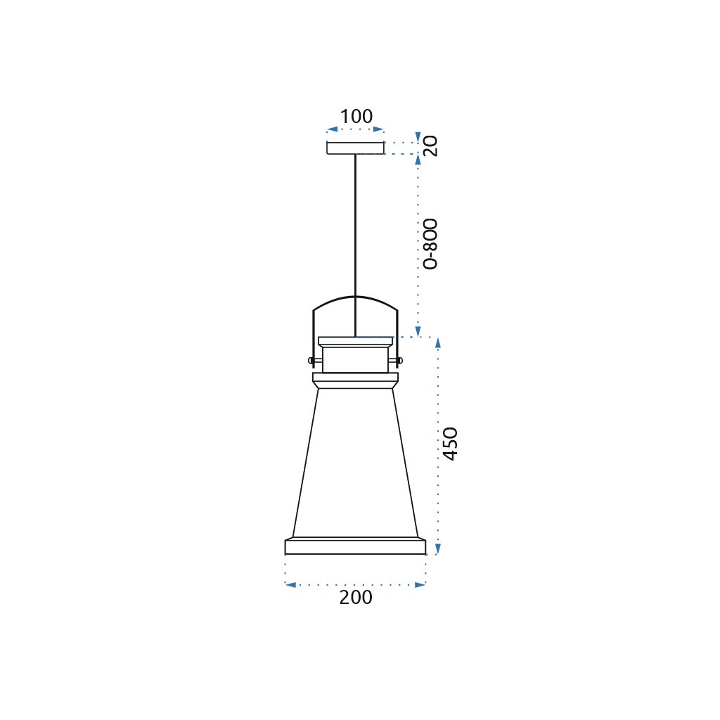 Svítilna je vyrobena z kovu se stropním krytem. Svítilna má nejoblíbenější závit určený pro žárovku E27. Délku kabelu lze přizpůsobit místnosti nebo uspořádání.