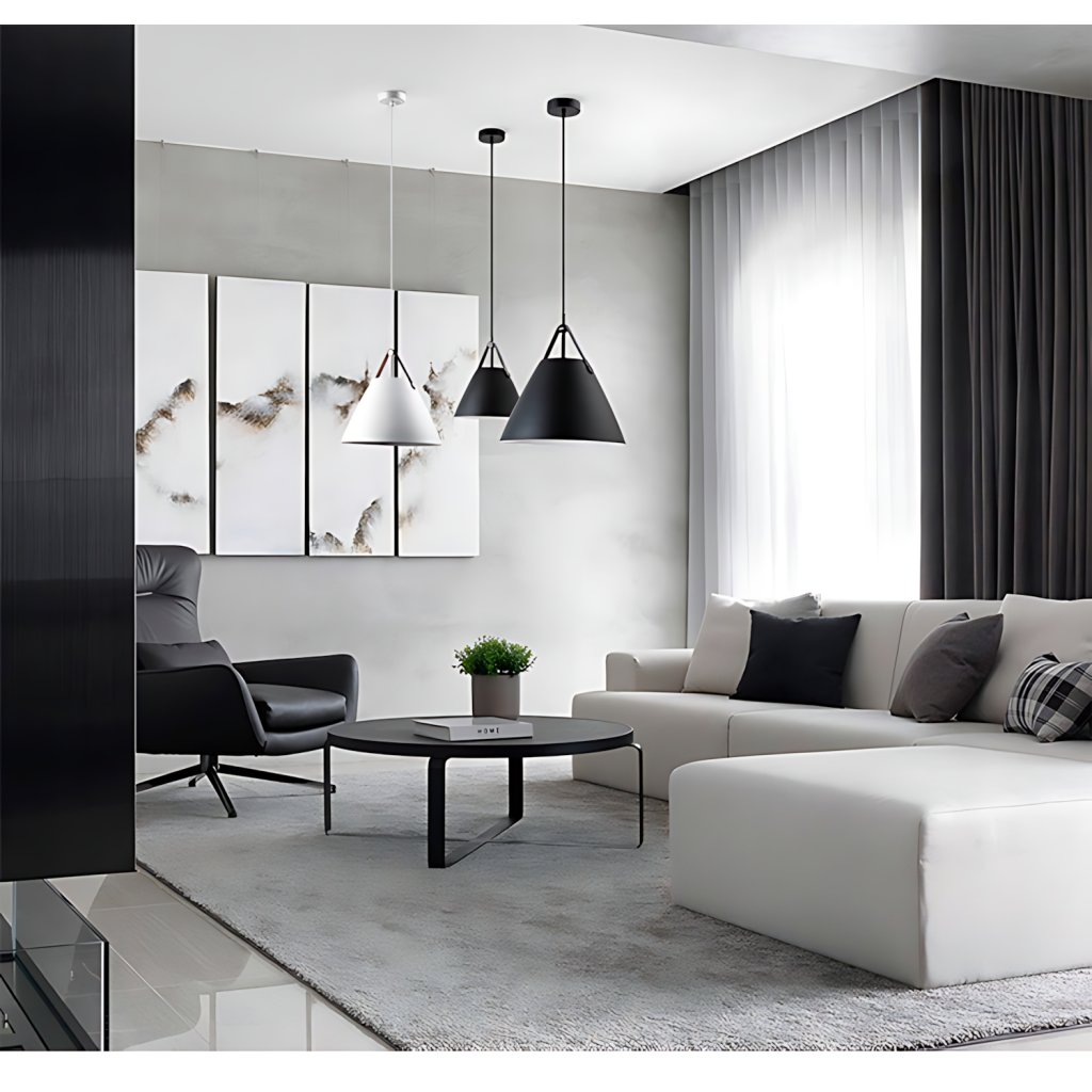 Svítidla jsou vyrobena z hliníku, každá má kožený řemínek v přírodní barvě, který slouží jako ozdobný háček. Lampa má nejoblíbenější závit určený pro žárovku E27. Délku kabelu lze nastavit tak, aby vyhovovala místnosti nebo uspořádání.