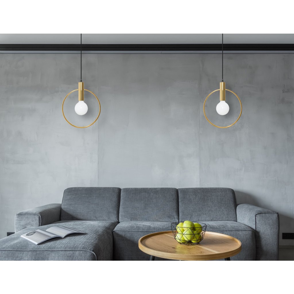 Svítilna je vyrobena z kovu se stropním krytem. Svítilna má tradiční závit E27 používaný ve většině svítidel. Délku kabelu lze přizpůsobit místnosti nebo uspořádání – vše závisí na vaší fantazii. Zlatý akcent dodává styl a jistě upoutá pozornost každého. Žárovka není součástí sady.